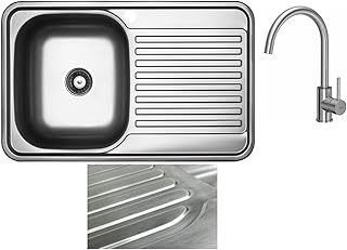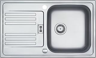 VBChome Fregadero empotrable, 78 x 48 cm, estructura satinada, acero inoxidable, superficie de estante, escurridor cuadrado, sifón