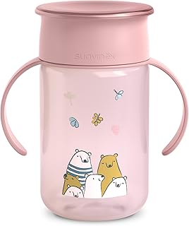 Suavinex, Vaso Aprendizaje Bebé, Vaso 360 con Sistema Antiderrame y Antigoteo, Magic Cup con Asas y Tapa, Apto Lavavajillas y Microondas, 340 ml, Taza Entrenamiento para Bebés +12 Meses, Bears Rosa