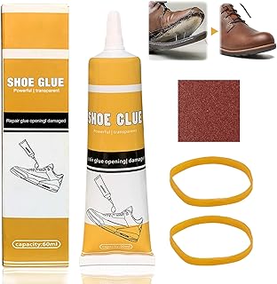 Pegamento Zapatos Suela, Pegamento Zapatillas, Pegamento para Zapatos, Viene Completo con Papel de Lija y Bandas de Goma, Pegamento Fuerte Transparente para Reparar Zapatos, Caucho, Cuero y Más -60ml
