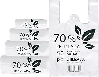 Bolsas de plástico asa tipo camiseta 40x50, Alta Resistencia, Reutilizables, 70% Recicladas, Apto para uso alimentario (200)